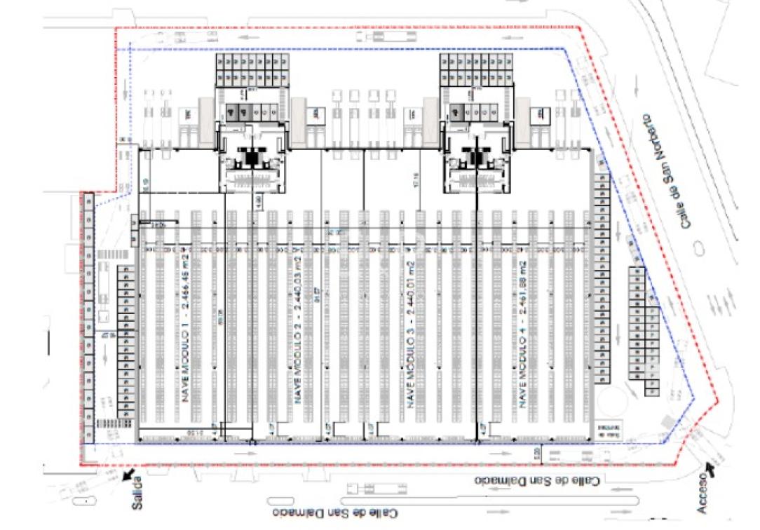 Sup Parcela: 19.125 m² Playa de Maniobras: 32 m Recinto perimetral cerrado con controles de acceso. PCI Riesgo Medio 5 con Rociadores. (Edificio Tipo C) Plazas de parking: 126. Fachada Prefabricado hormigón de 20 cm con 10 cm de Porex o similar Estructura Prefabricado de hormigón en gris Cubiertas Membrana sintética de TPO de 1,20 mm en color blanco. Plataforma logística multi-inquilino, con posibilidad de arrendar módulos de manera individual o conjunta. Solera Hormigón resistencia de 5 T/m².