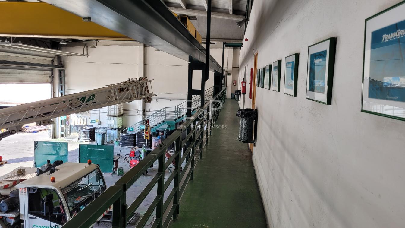35 Plazas de parking. Oficinas con calefacción y climatización Amplias y diáfanas zonas de trabajo Sala de formación 2 despachos privados Sala de reuniones Aseo masculino y Aseo femenino Fibra óptica Acceso directo a taller y almacenes Almacén de recambios (2 niveles) Almacén de archivos de oficina y usos múltiple (2 niveles) 6 Boxes para reparación Puente grúa de 5 toneladas Almacén de la zona de pintura Zona de pintura con ventilación artificial 8 tomas A. Comprimido, Zona de lavado + caseta de maquinaria Surtidor de gasolina.
