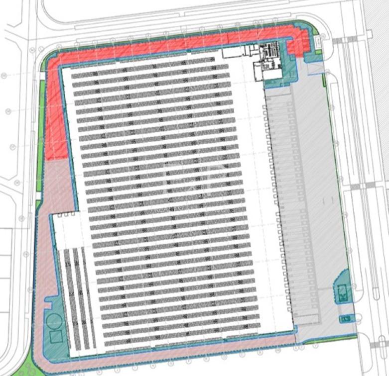 ZONA ALMACÉN: Estructura metálica. Fachada con paneles sándwich in situ con aislamiento. Cubierta terminada en panel sándwich. Puertas de 2,8 x 3 m para cada muelle de trailers. Puertas de 4 x 5 m en cada acceso por rampa. Puertas de 5 x 3 m de puertas de furgonetas. Iluminación exterior e interior tipo LED con niveles de iluminación previstos: almacén y muelles de carga: 200 lux, oficinas: 500 lux, locales técnicos: 250 lux. Sistema de Protección contra incendios con Sprinklers tipo SFR K -25, Exutorios de lamas de aluminio.