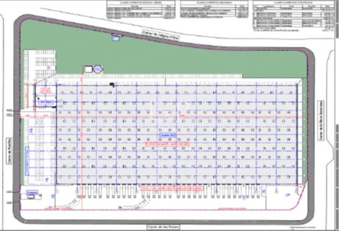 Altura Libre: 12,70 m. Estudio capacidad almacenaje pallets. Potencia Eléctrica: 10,5 W/ m². Planta fotovoltaica instalada. Playa de Maniobras: 60 m. Iluminación LED/BMS & 4% luz natural. Muelles de carga: 113. (en 3 caras de la nave) Riesgo Medio 5, RD2267/2004. Rociadores ESFR K25, BIES y Detección. Plazas parking vehículos ligeros: 500 Plazas parking Trailers: 80. Oficinas incluidas. Sostenibilidad BREEAM Very Good