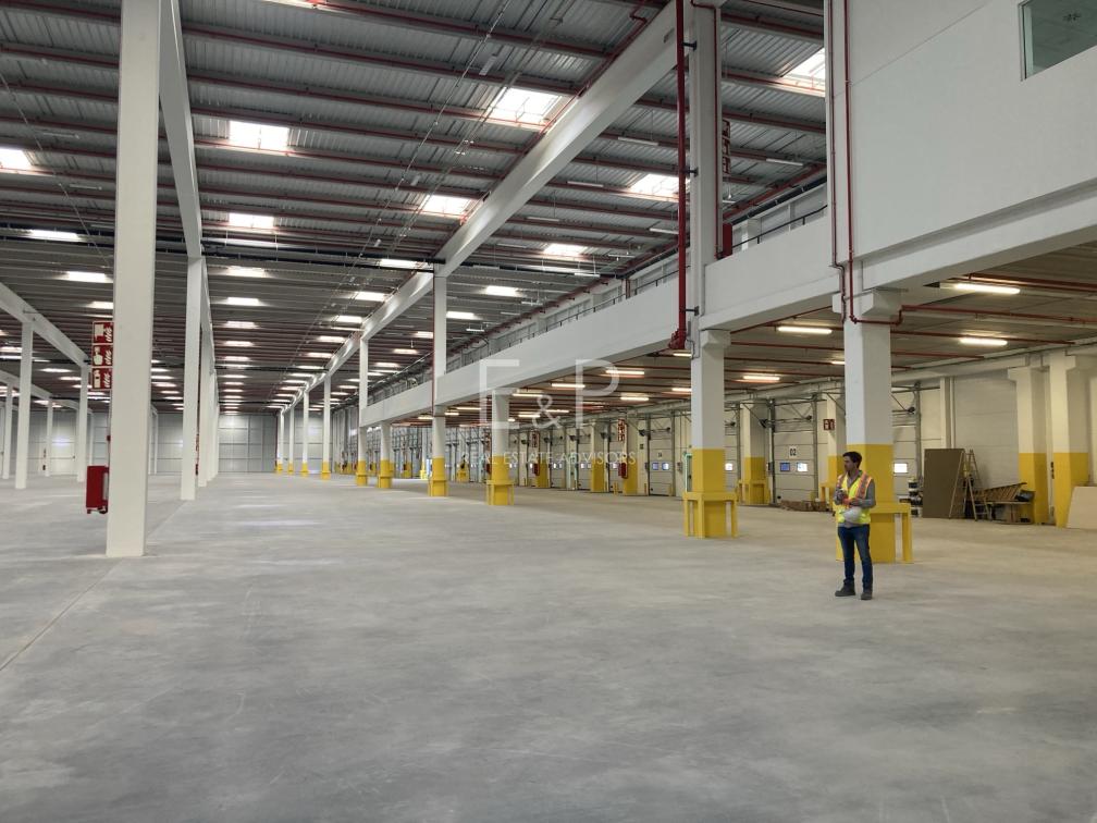 Estructura: Trama: 28,50 m x 12,12 m. Fachada: Panel de Sándwich. Exterior: micro perfilada de acero galvanizado. Cubierta tipo Deck 60 mm Soleras interiores: 18 cm de espesor sin juntas Resistencia de Solera 8 Tn carga puntual; 5 Tn/m² Preinstalación de sistema de CCTV. Potencia eléctrica: 850 KW Instalación fotovoltaica: 100 KW Al libre: 11,70 m Al máx. almacenamiento: 12,20 m Puertas de acceso a nivel: 1. Campa de 35 m Sala PCI riesgo medio nivel 5 con rociadores. Control de accesos Vestuarios completamente equipados. Iluminación LED. Parking vehículos: 223 Cargadores Eléctricos.